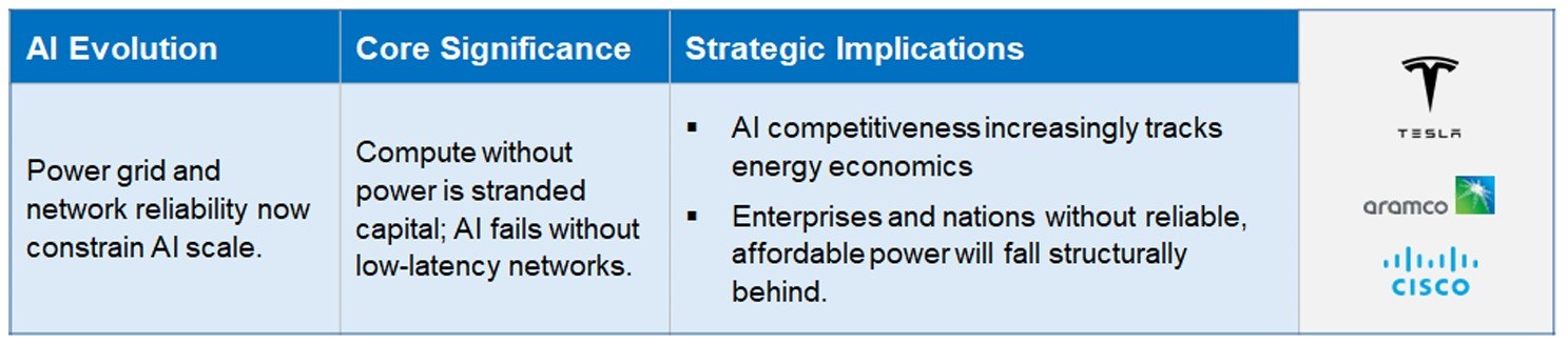 - The AI race is now limited by electricity, grids, and networks – not algorithms. – Power, not Chips, is the Binding Constraint on AI Scale