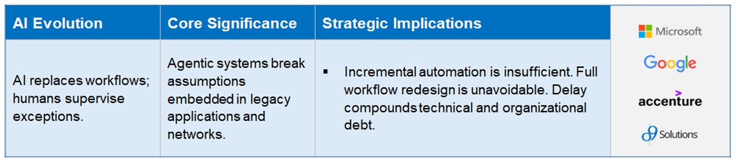 - AI does not fit into old workflows – it replaces them. – Workflows are Being Rebuilt for AI Agents – Humans offer Judgement as a Service to validate and maintain Governance