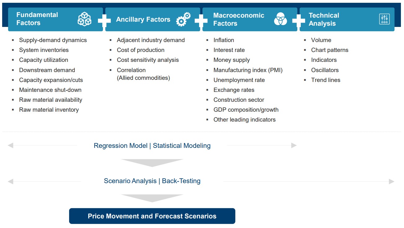 We deliver comprehensive price analysis, including historical tracking, current trends, and forecasts. Our insights cover price trends, regional variations, and qualitative factors impacting prices. Our scenario-based price forecasting includes supply-demand dynamics, raw material trends, and macroeconomic indicators. We provide short-term forecasts (monthly to annual) and long-term projections (up to 10 years) tailored to your category requirements.